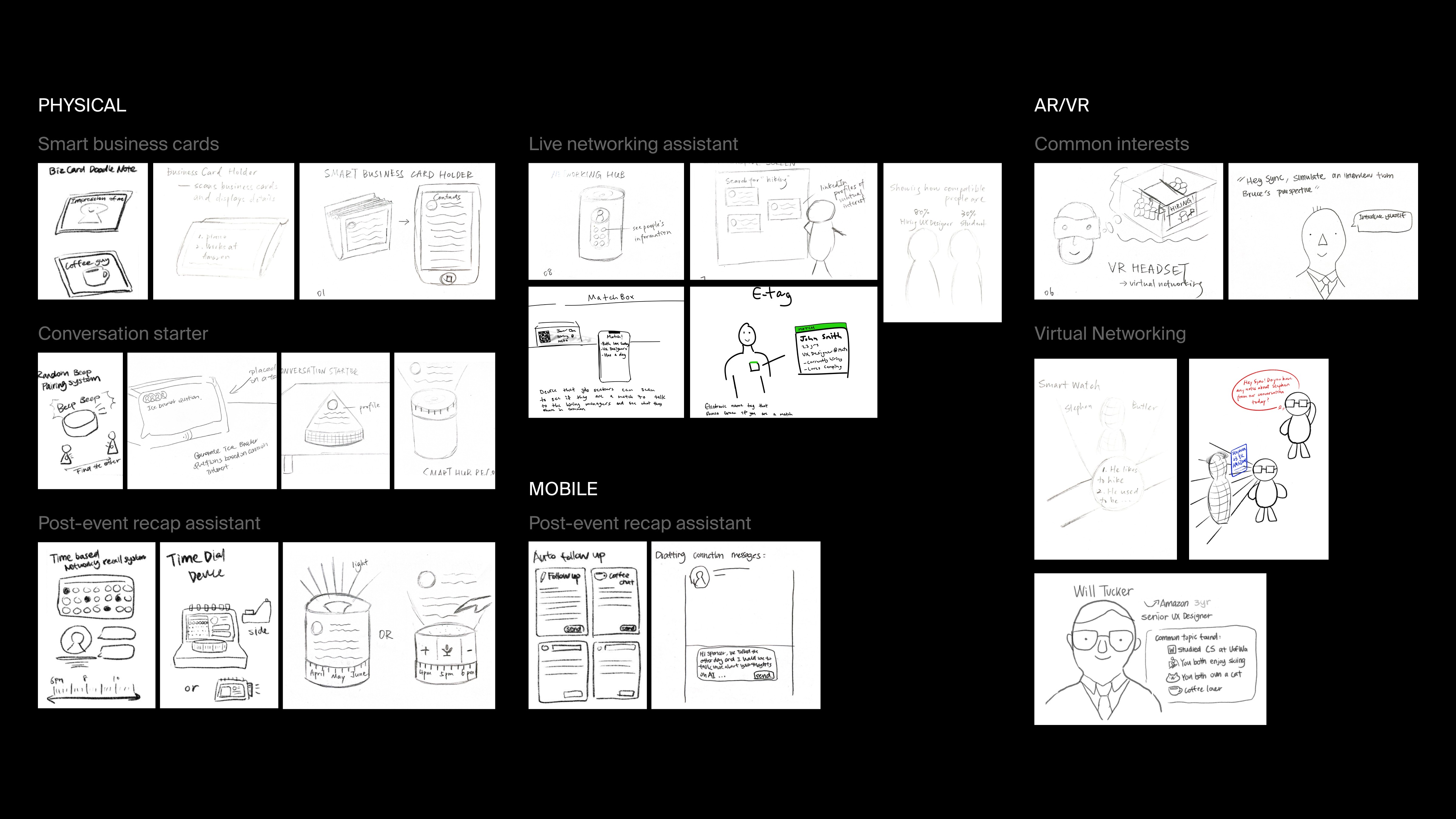 We started with 22 sketches and categorized them into 6 groups. We then rated all of them to discover which ones were most promising.
