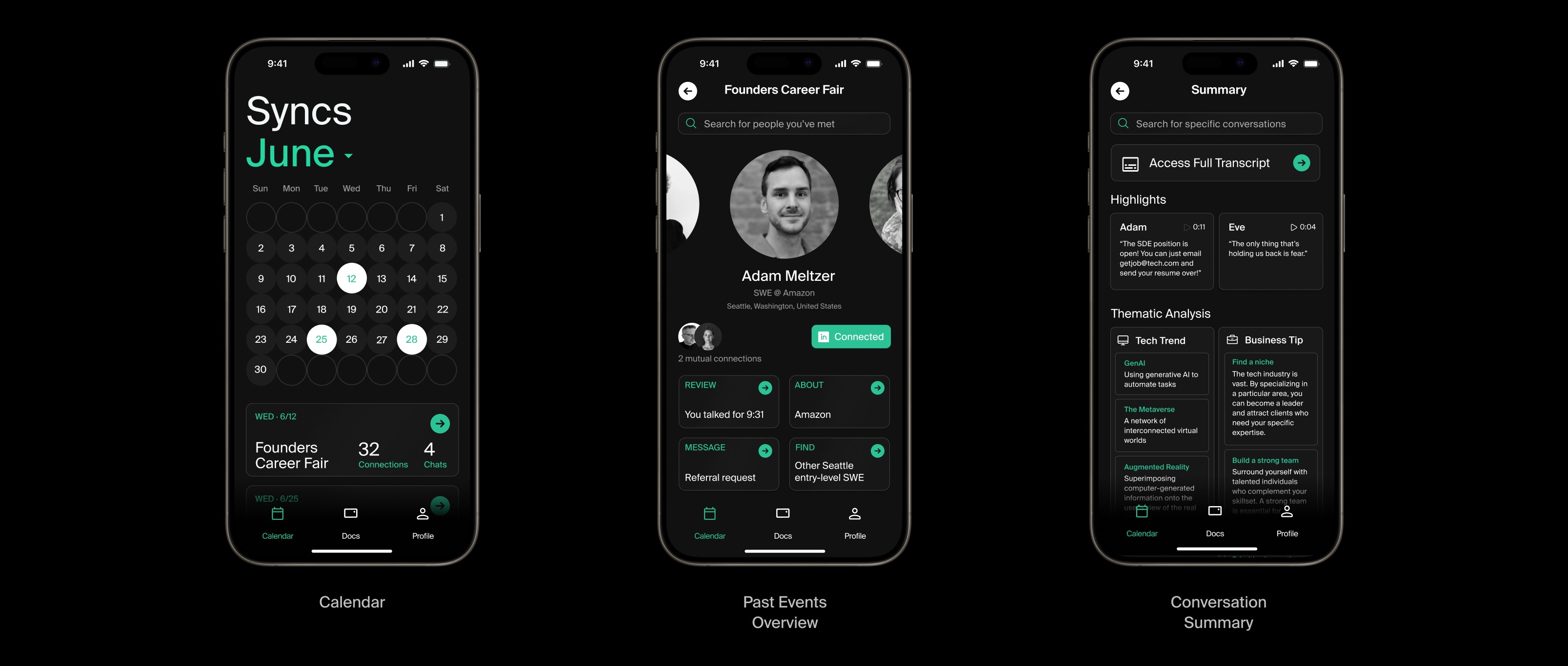 Using information from saved recordings, Sync utilizes AI to create engaging conversation starters to get users the best chance of connecting.